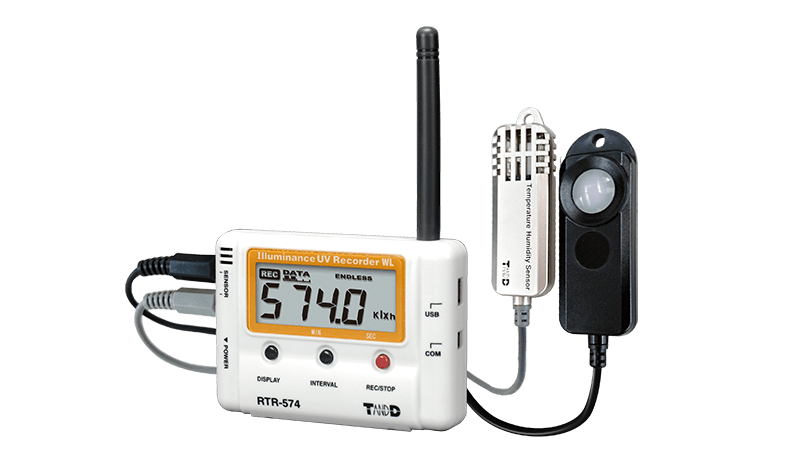 The RTR-500/RTR500B series allows you to mix and match an array of wireless radio communication loggers with various Base Units or Data Collectors to meet your needs. Logged data can be automatically sent via network or mobile communication to be saved in cloud storage or to a specified location. The RTR-574-S measures and records 4 items: UV, illuminance, and temperature and humidity with superior accuracy. It also records and displays cumulative UV and illuminance.