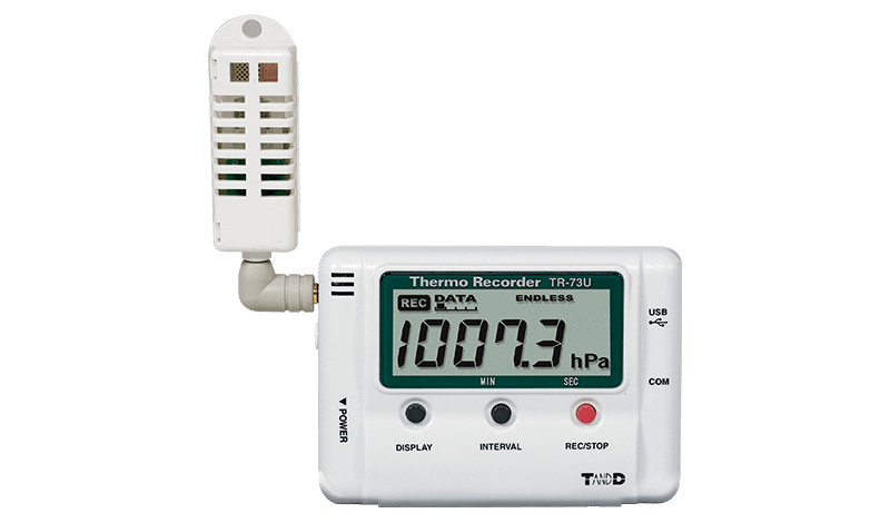 The TR-7Ui series, with a simple USB connection to your PC, provides an easy way to make detailed settings and download data. Basic settings and REC start/stop can also be done by simply pressing buttons on the units themselves. TR-73U is a three-channel data logger designed to simultaneously measure and record barometric pressure, temperature and humidity. Perfect for pressure management in places like clean rooms.